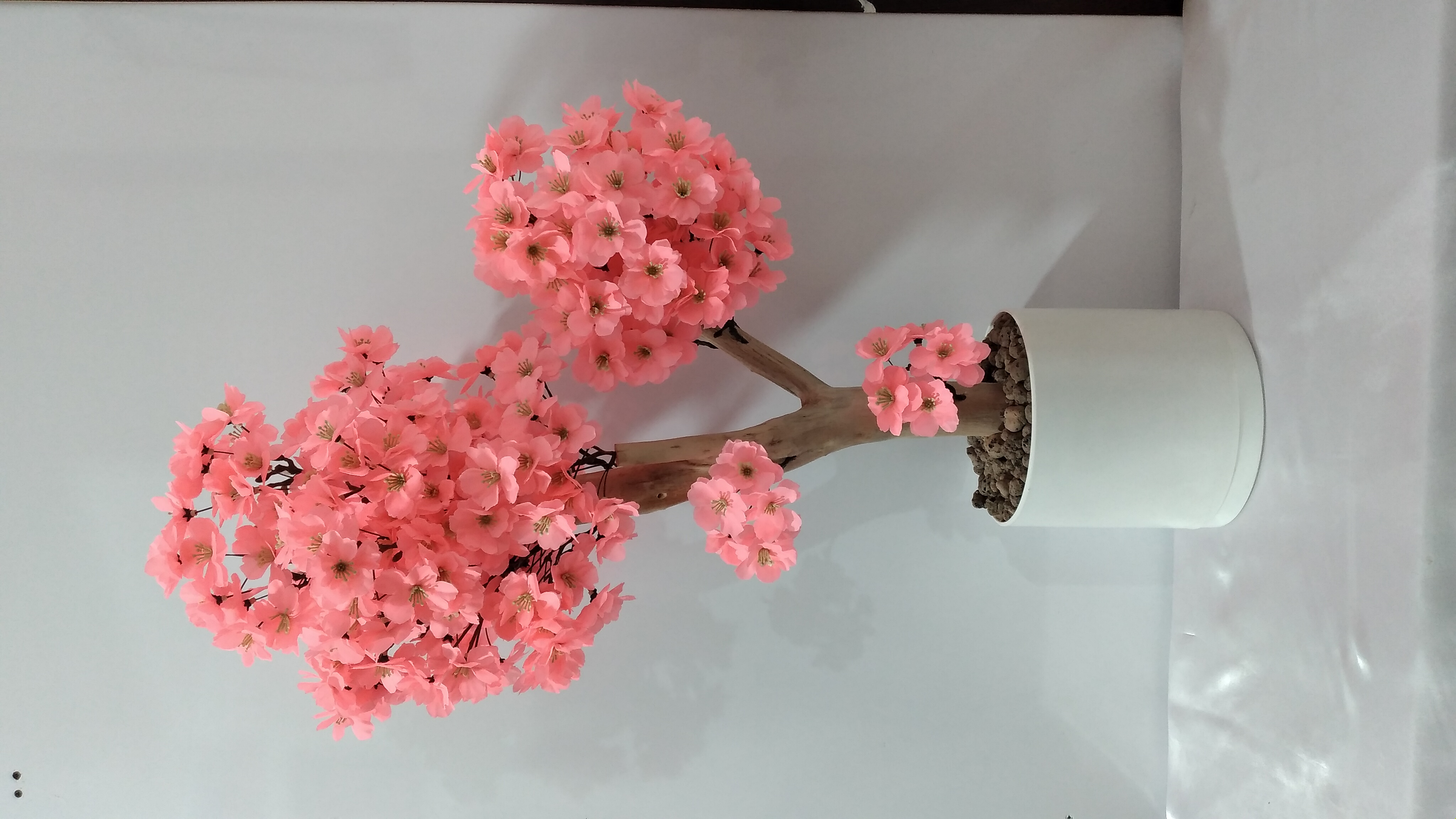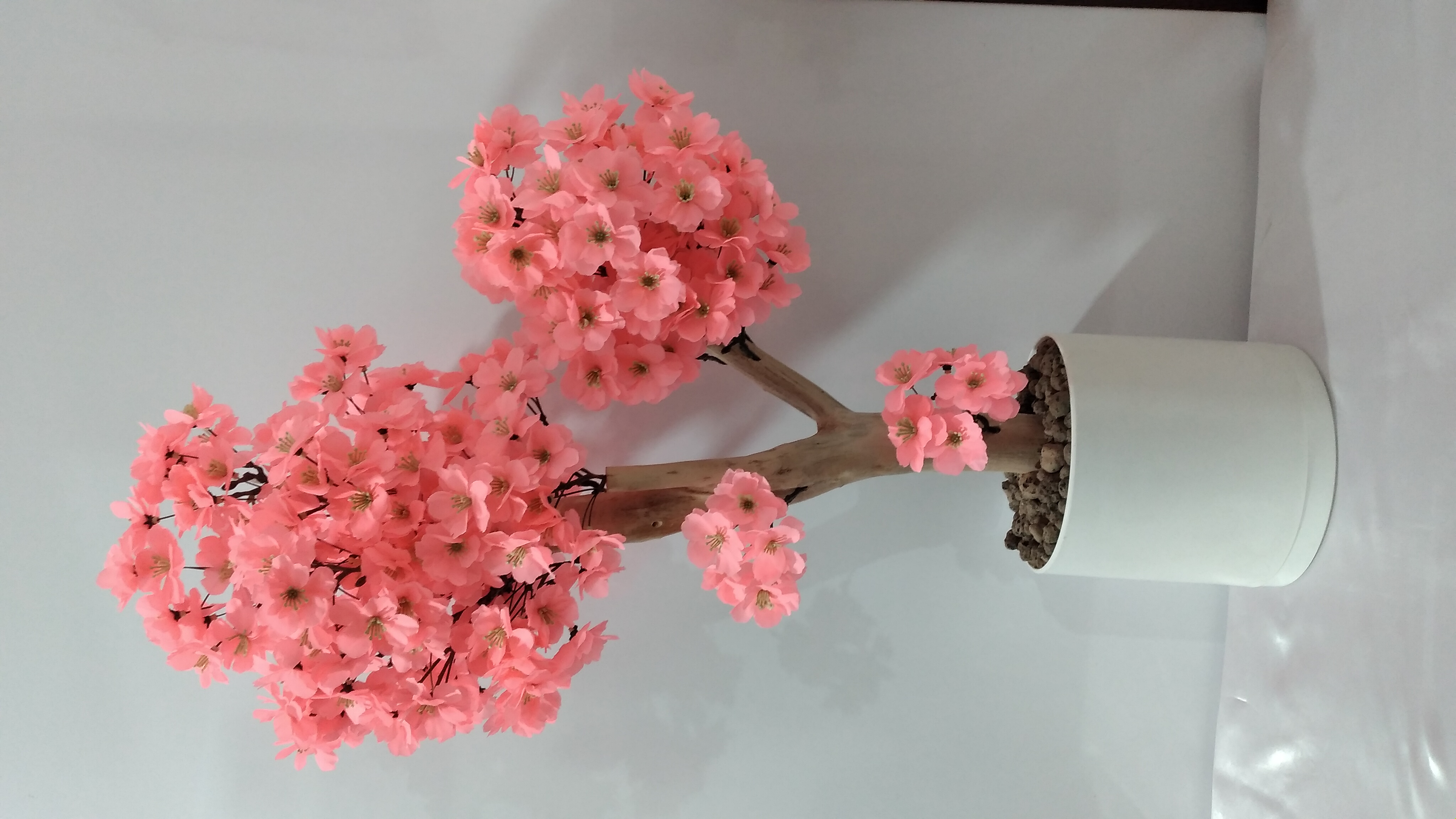درختچه شکوفه گلبهی مینیاتوری ارتفاع ۹۰ سانت بسیار زیبا قابل شستوشو جنس شکوفه پارچه هست با تنه طبیعی تنه روغن کاری شده که هیچ پوسیدگی نگیرد مناسب میز جزیره و میز عسلی اتاق نشیمن یه طبیعت جاودان